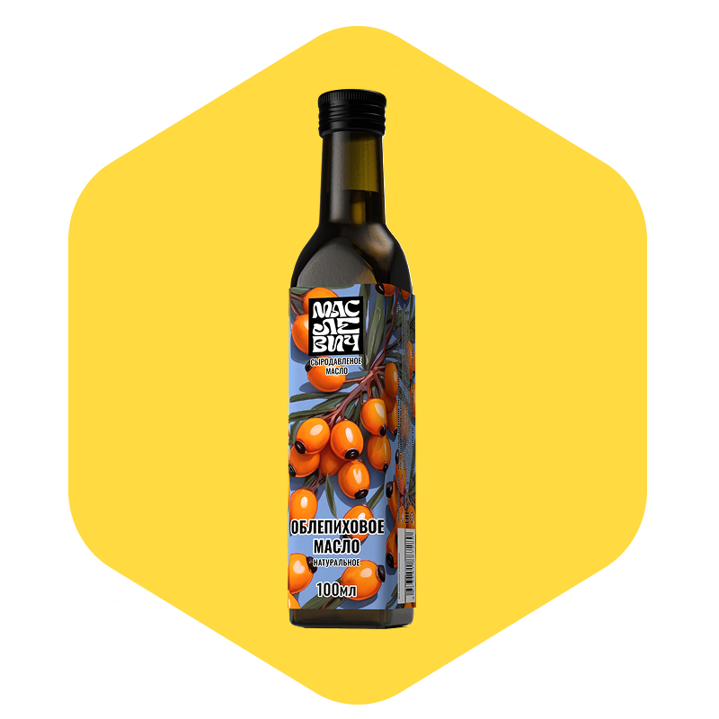 Облепиховое масло холодного отжима в стеклянной бутылке 100/250 мл Натуральное облепиховое масло холодного отжима производится из свежих ягод облепихи без добавления консервантов и химии. Это настоящий витаминный концентрат: богато каротиноидами, витаминами A, E, C, и жирными кислотами.
