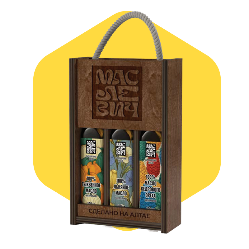 Подарочный набор масел холодного отжима 3×100 мл в деревянной коробке в Барнауле